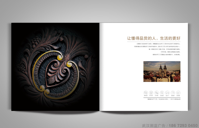 產(chǎn)品畫(huà)冊(cè)設(shè)計(jì)解決方案:整本產(chǎn)品畫(huà)冊(cè)的設(shè)計(jì)以深咖啡色為主色調(diào),金色為輔助色,封面為深咖啡色,LOOG及Slogan采用燙金工藝,壓粗布紋顯得簡(jiǎn)潔而有質(zhì)感,畫(huà)冊(cè)采用280x280mm的正方形設(shè)計(jì)。由于眾泰金屬位于云南省,在此本產(chǎn)品畫(huà)冊(cè)的設(shè)計(jì)過(guò)程中,均為在線上交流溝通,在畫(huà)冊(cè)設(shè)計(jì)定稿后交由印刷廠制作,畫(huà)冊(cè)印刷完后通過(guò)物流的形式,將畫(huà)冊(cè)的成品送到遠(yuǎn)在千里之外的云南客戶(hù)手中。距離不是問(wèn)題,服務(wù)才是真理,圖藍(lán)廣告公司專(zhuān)注于畫(huà)冊(cè)的設(shè)計(jì)與印刷服務(wù),您只需要將畫(huà)冊(cè)設(shè)計(jì)的訴求告知我們,在后期的設(shè)計(jì)、印刷過(guò)程中,讓您全程無(wú)憂。