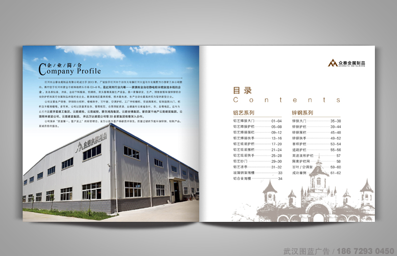 涉及項(xiàng)目:鋅鋼陽(yáng)臺(tái)護(hù)欄畫(huà)冊(cè)設(shè)計(jì)、鋅鋼大門(mén)畫(huà)冊(cè)設(shè)計(jì)、鋁藝大門(mén)畫(huà)冊(cè)設(shè)計(jì)、后期畫(huà)冊(cè)印刷制作